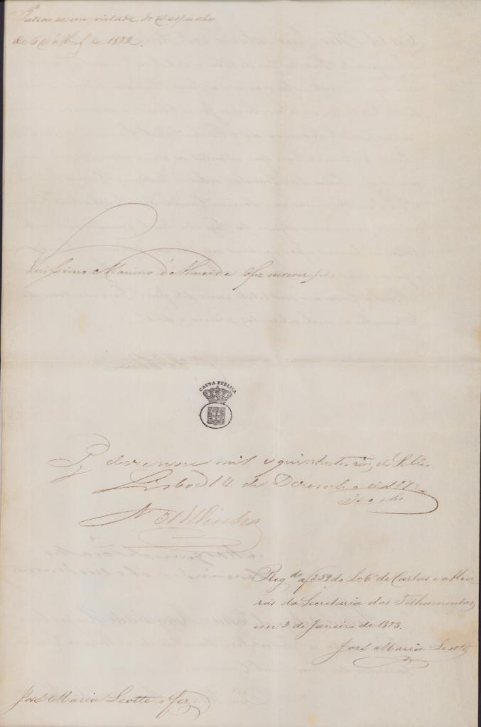 Bellissima Nomina su Carta Pergamena con Firma e Postilla di Luigi I Re di Portogallo e dell'Algarve.