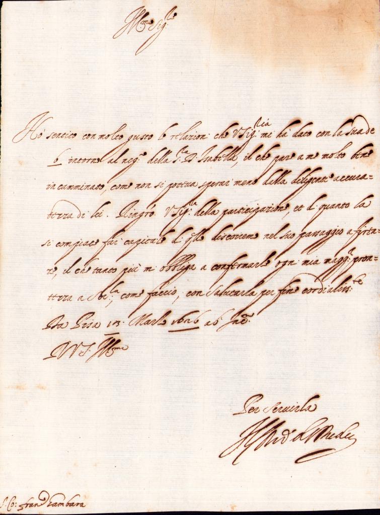 Lettera inviata da Pisa il giorno 13 Marzo 1626