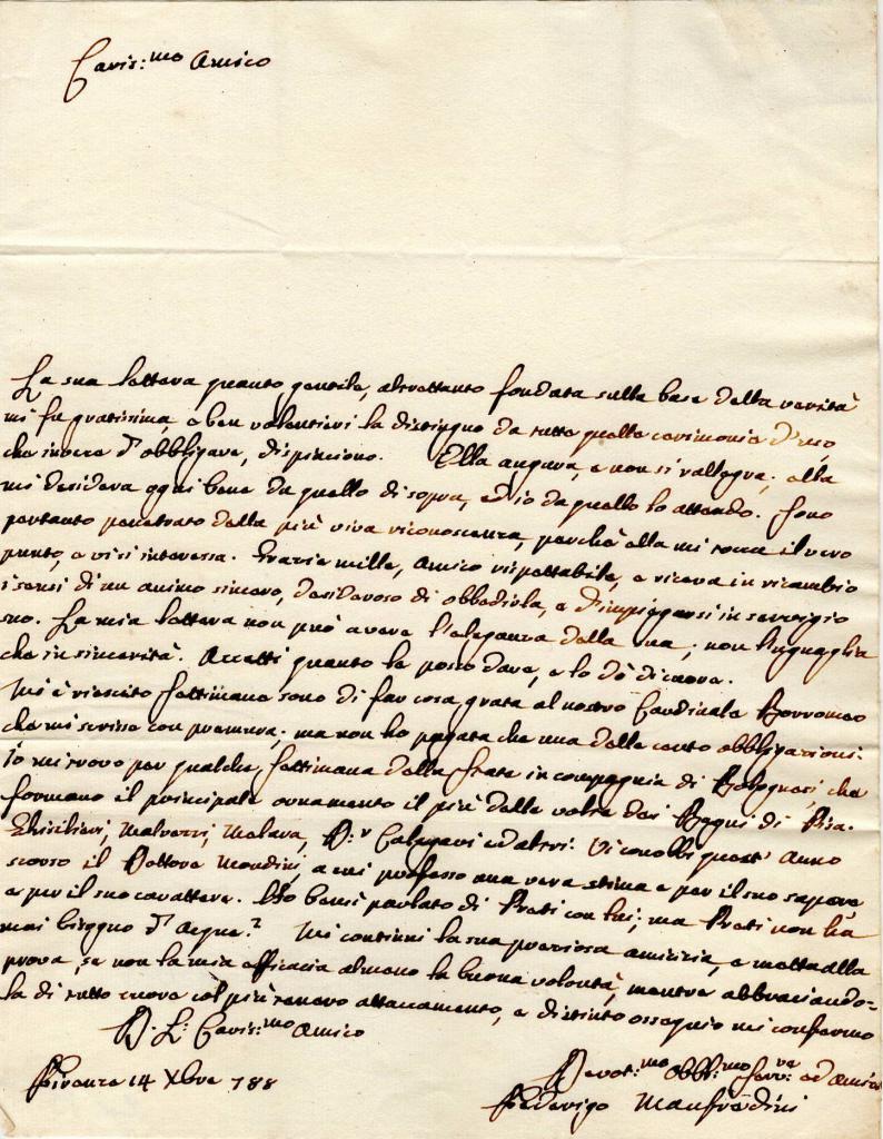 Lettera redatta a Firenze il 14 Dicembre 1788.