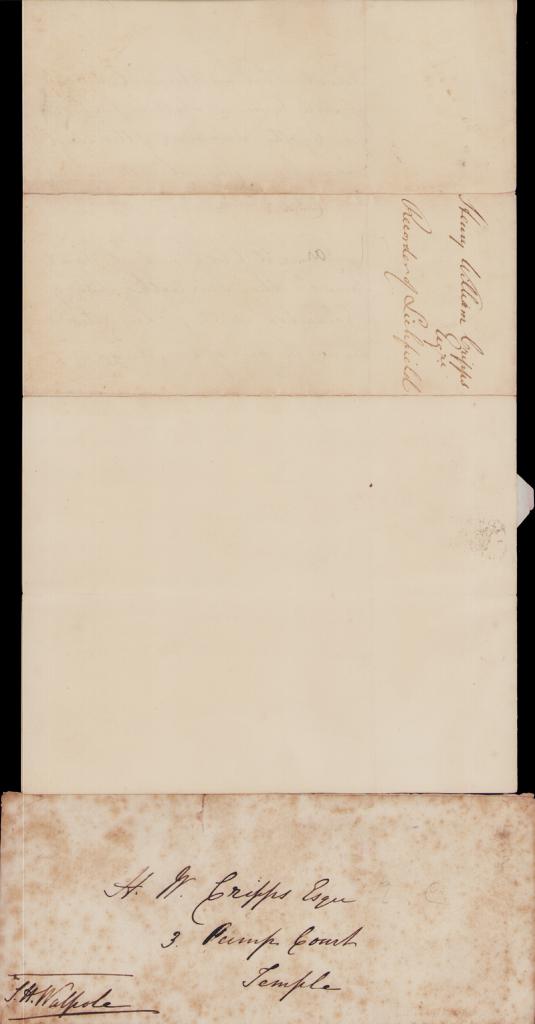 Completa il carteggio la lettera autografa di H.W. Cripps con cui ringrazia l'Home Secretary per la nomina a Giudice.