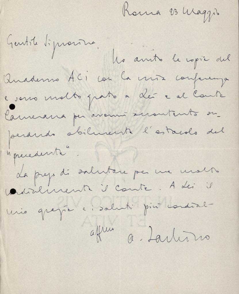 Lettera redatta presso Roma il 23 Maggio s.a.