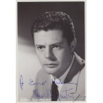 Cartolina postale fotografica con dedica e firme autografe di Marcello Mastroianni, celeberrimo attore.