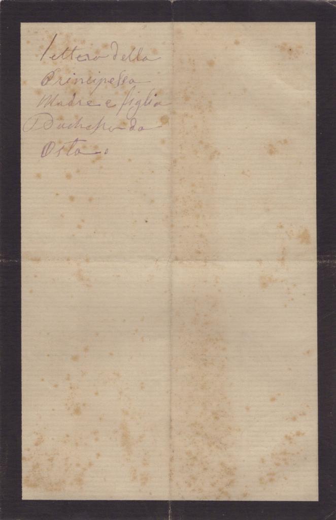Il manoscritto è ben conservato, scritto su carta vergata con bordi neri a lutto, e costituisce un documento rarissimo per via della breve vita dell’autrice. La firma "Maria della Cisterna" è apposta in calce alla missiva.