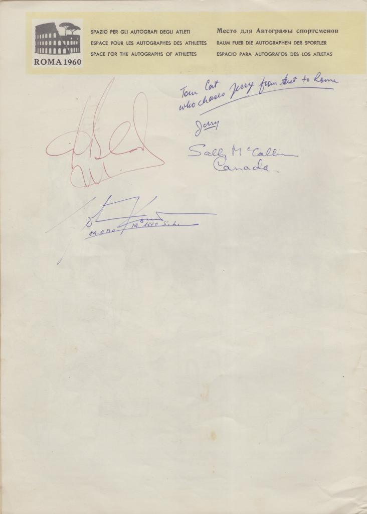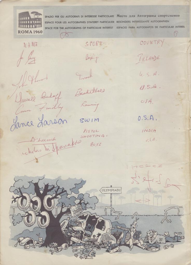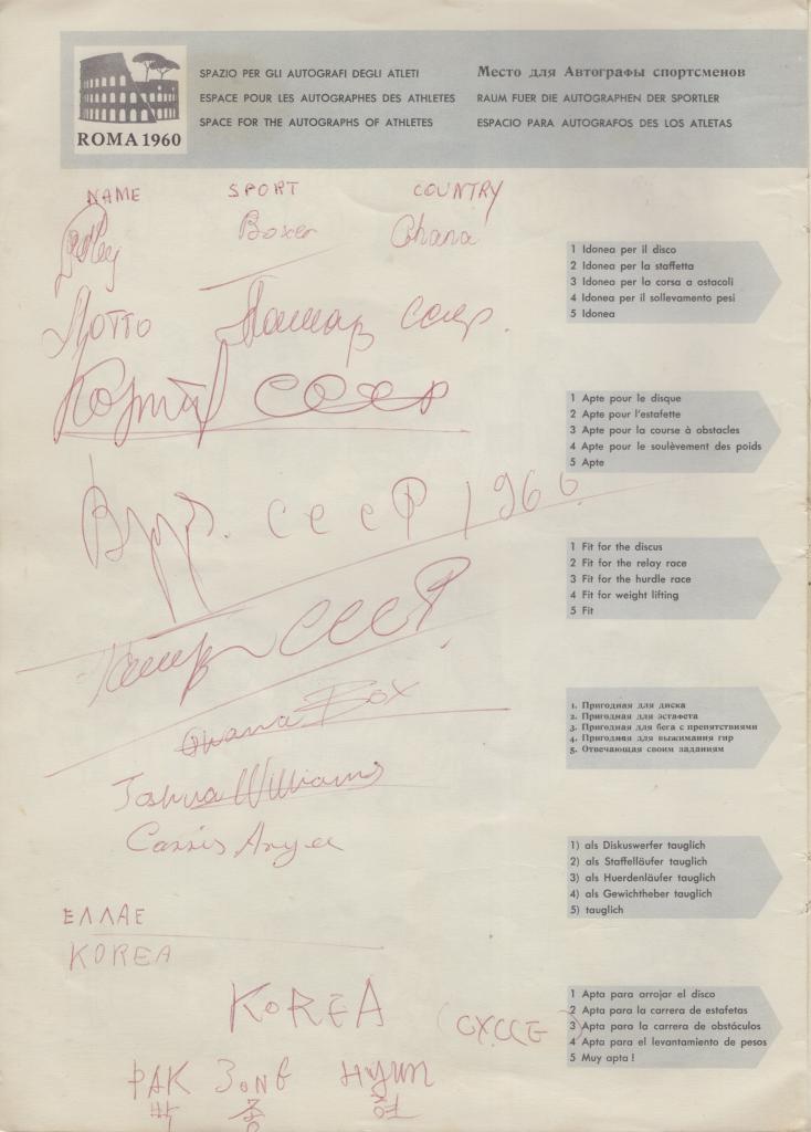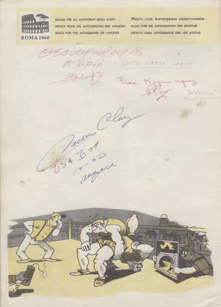 Sono numerosissime le firme presenti, tra le quali spicca sicuramente quella di Cassius Clay, futuro Muhammad Ali (USA, pugilato), oro nei mediomassimi: una firma di rilievo storico, appartenente a quello che diventerà il più iconico pugile di tutti i tempi.