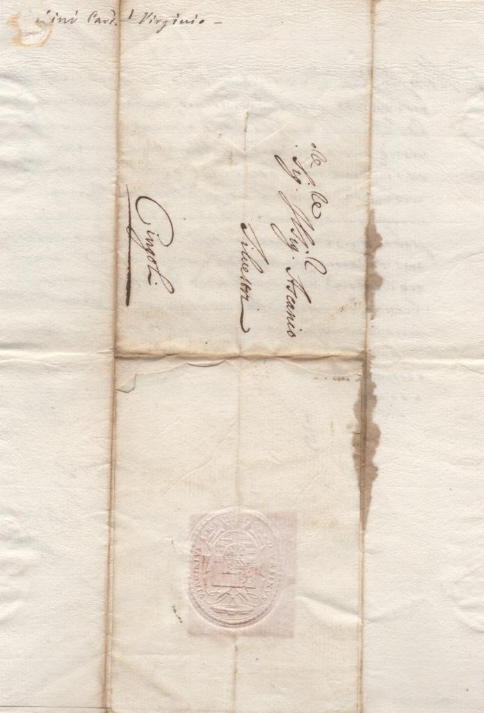 Lettera manoscritta con autografo del Cardinale Virginio Orsini, redatta a Roma il 5 maggio 1663 e indirizzata al Governatore di Cingoli, Ascanio Silvestri. Al verso è presente un sigillo in ceralacca perfettamente conservato.