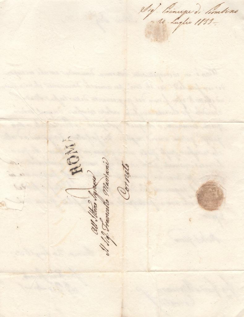 Autografo di Luigi I Boncompagni Ludovisi, Principe di Piombino, su lettera manoscritta datata Roma, 20 luglio 1833.