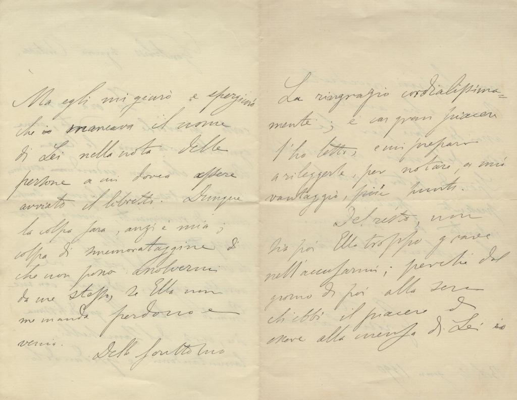 Accortosi dell’omissione, si reca personalmente presso l’editore Zanichelli, manifestando il proprio disappunto. Riferisce quindi che l’editore avrebbe giustificato l’accaduto sostenendo l’assenza del nome della contessa nell’elenco di spedizione; nondimeno, Carducci assume su di sé la responsabilità della dimenticanza, attribuendola a un proprio errore di memoria.