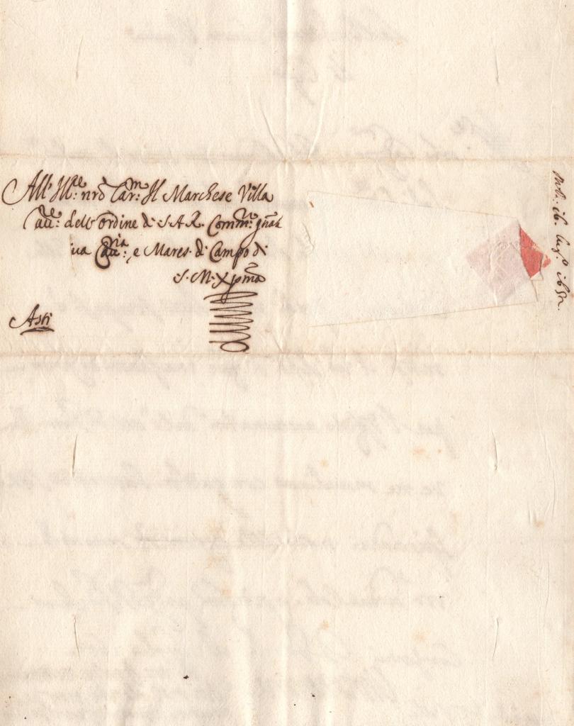 Il Marchese Villa a cui si riferisce questa missiva potrebbe identificarsi con il marchese Ghiron Francesco Villa, nobile e militare attivo al servizio dei Savoia nel XVII secolo.